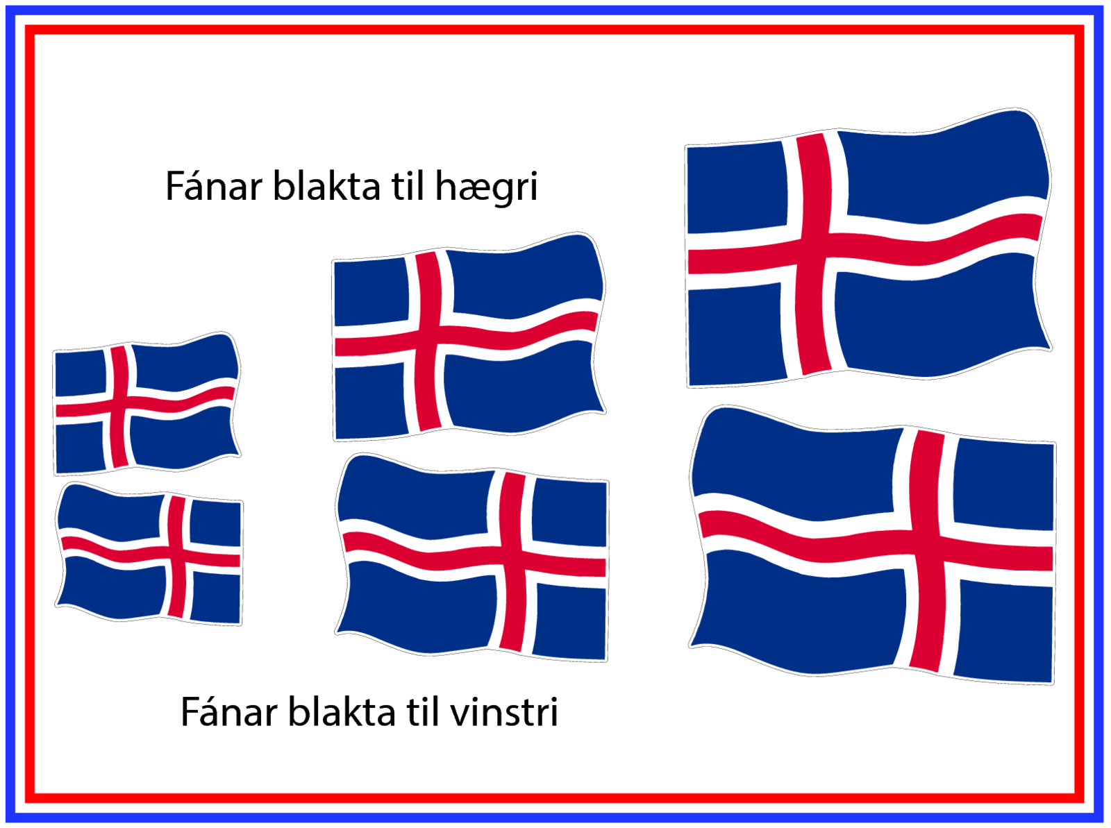 Látið vita hvaða þjóðfána þið viljið og í hvaða átt fáninn á að blakta það bætist 50% ofan á verðið við sér prentun.