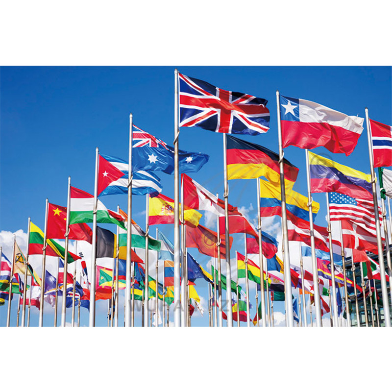 Þessir fánar eru mikið notaðir á 1,3-1,5mtr veggfástangir með lykkju að ofan og 1,5mtr spotta að neðan. Myndin breytist ekki þótt annað land sé valið, en rétta nafnið birtist samt sem áður á vefpöntuninni.