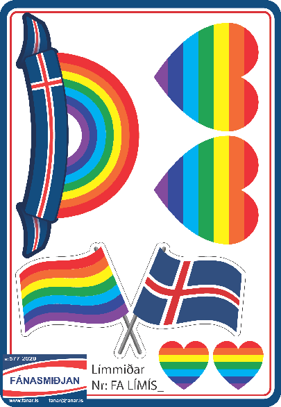 FÁNALIMMIÐAR Prentað er á hvíta filmu með olíubleki sem þolir þvott vel Látið vita hvaða þjóðfána þið viljið og í hvaða átt fáninn á að blakta. Hafið svo samband ef þið viljið hafa aðra útfærslu á þessu og við reynum að redda því.